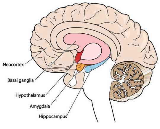 The orange section of the brain is the amygdala. Its job is to protect you – by getting you ready to run away from any danger. Blamb/shuttershock, CC BY